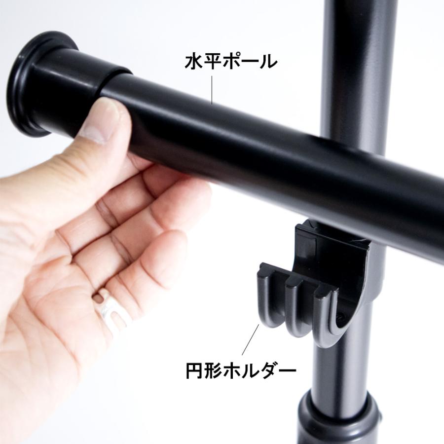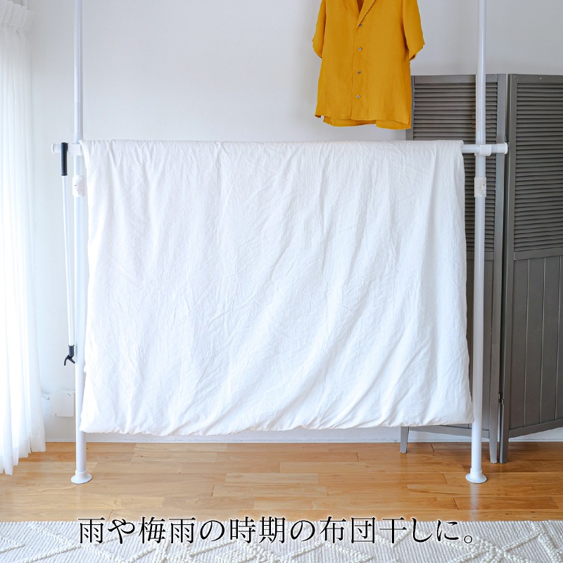 このポールハンガーラックは、リビング収納や押入れ収納に最適な便利なアイテムです。