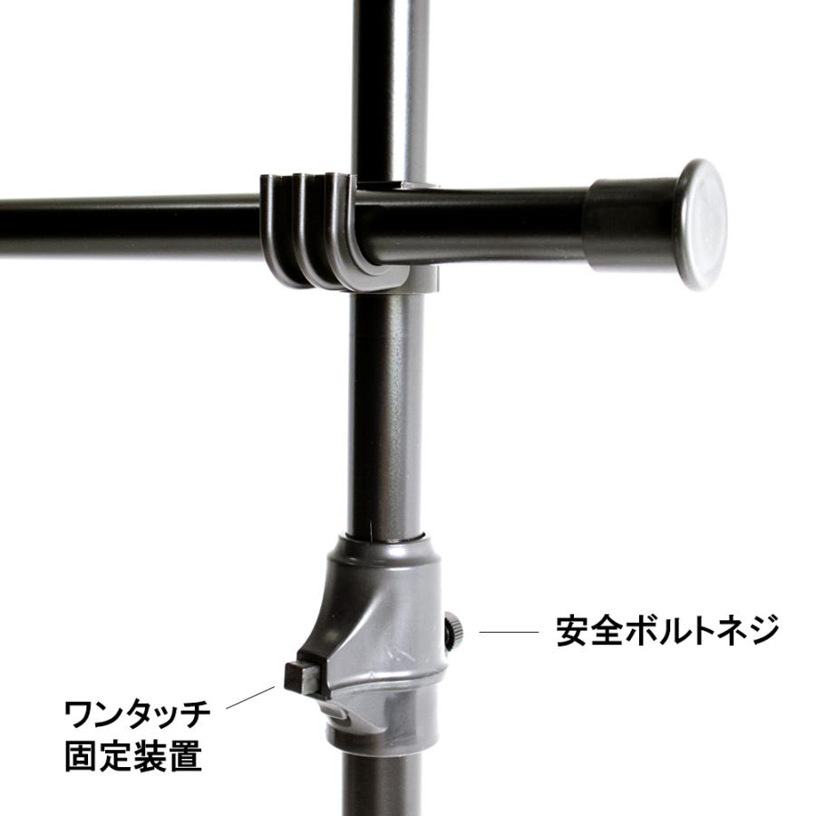 【簡単】ワンタッチ式突っ張りポールハンガーラック2段 シングルフック6個付き 高さ155-255cm 幅100-170cm 総耐荷重96kg ドリームハンガー WJ-130