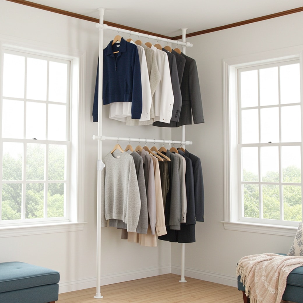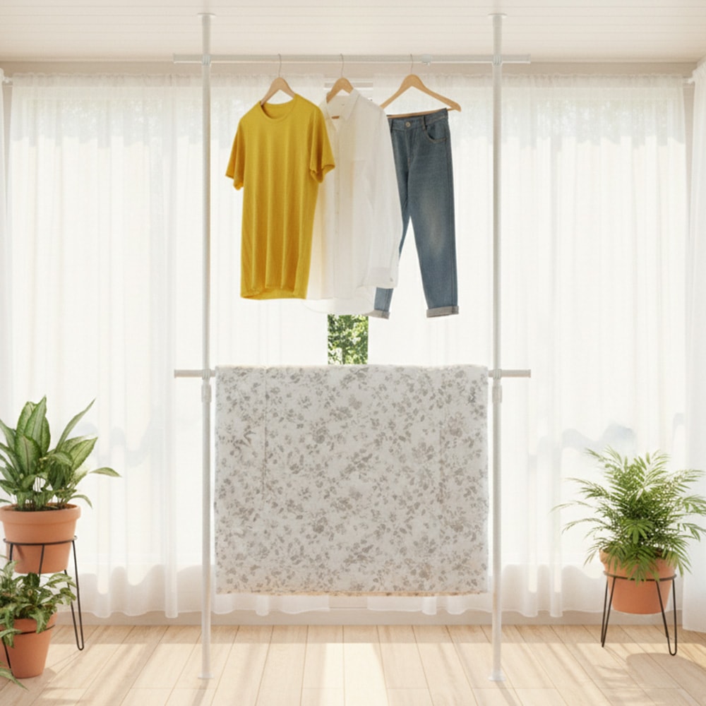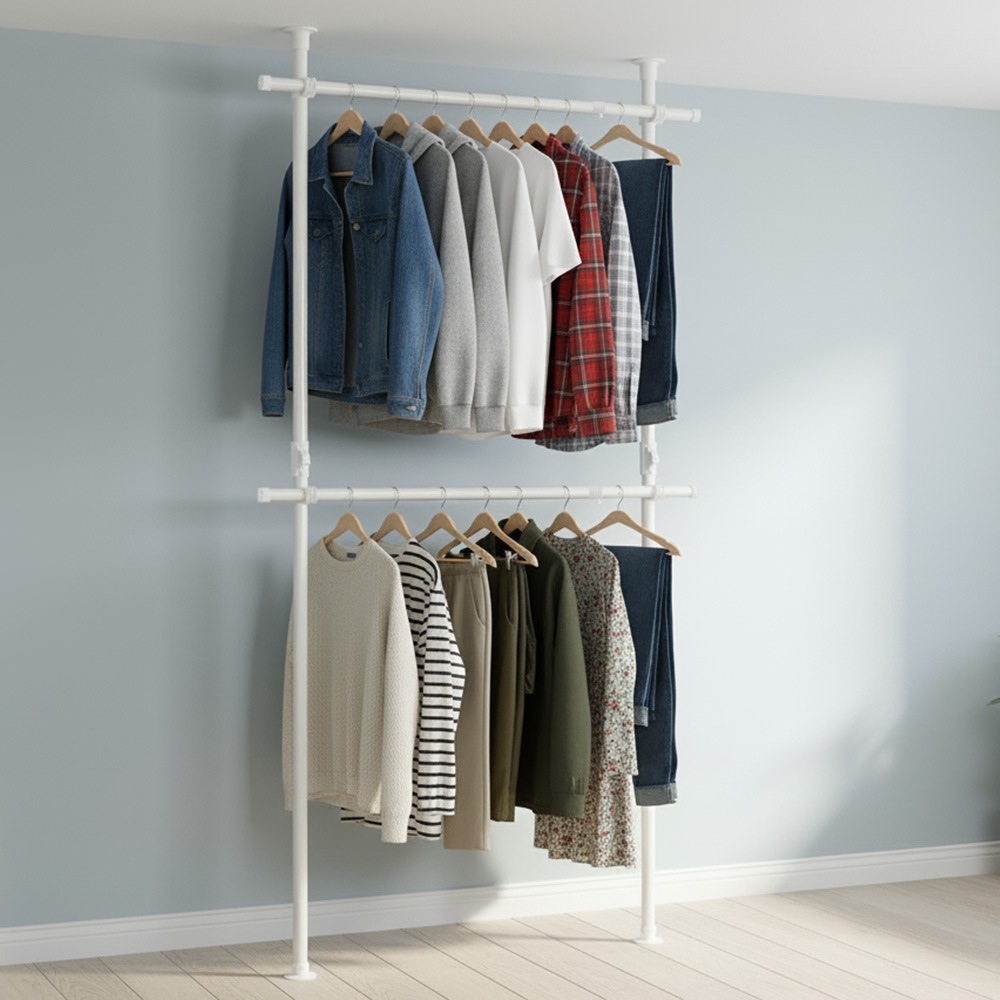 夢のような収納スペースを実現する「ドリームハンガー ワンタッチ式突っ張りポールハンガーラック2段 OH-2002N」