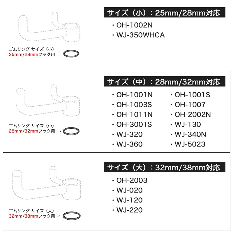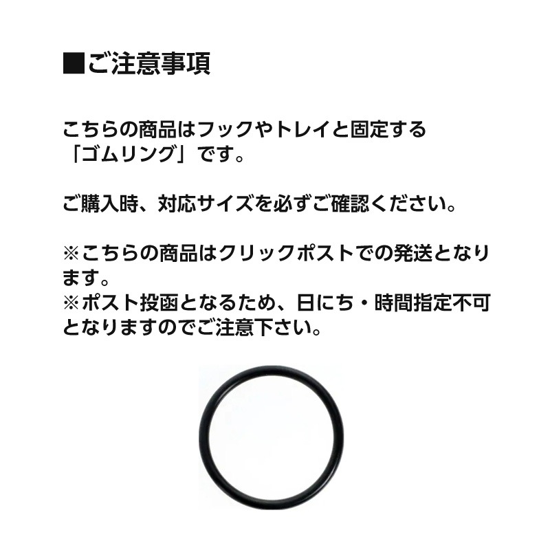 フックやトレイと固定する「ゴムリング」です。 ゴムリングを無くしたり、経年劣化した場合にご購入いただけます。