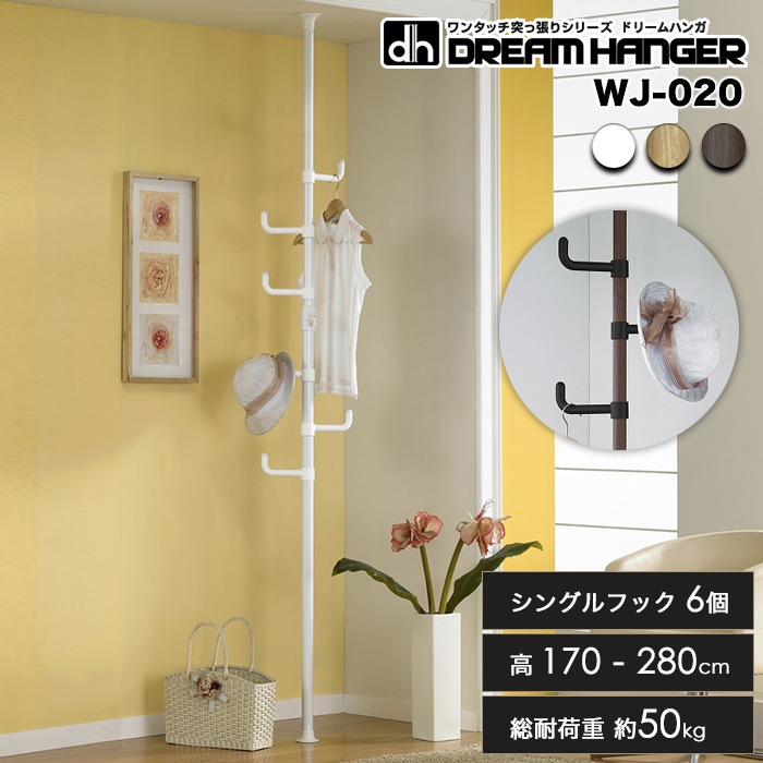 【簡単】ワンタッチ式突っ張りポールハンガー 小鳥フック6個 高さ170cm-280cm 総耐荷重30kg 子供 ドリームハンガー OH-1007