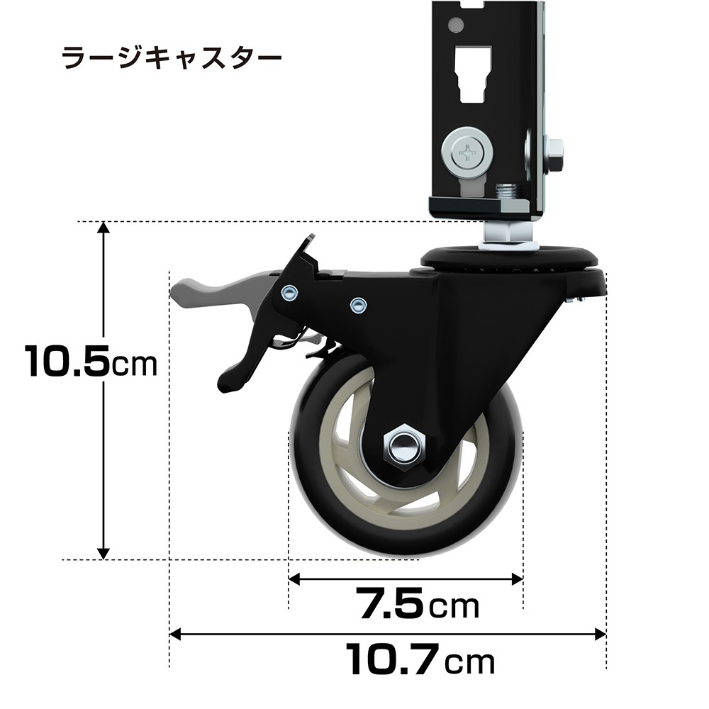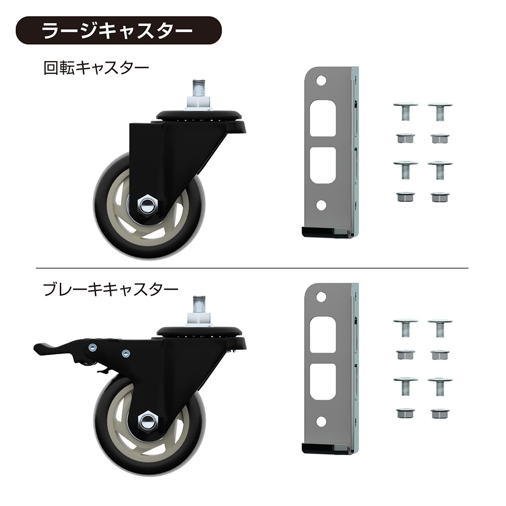 使いやすさも追求したこの商品には、ブレーキキャスター2個と回転キャスター2個が含まれています。