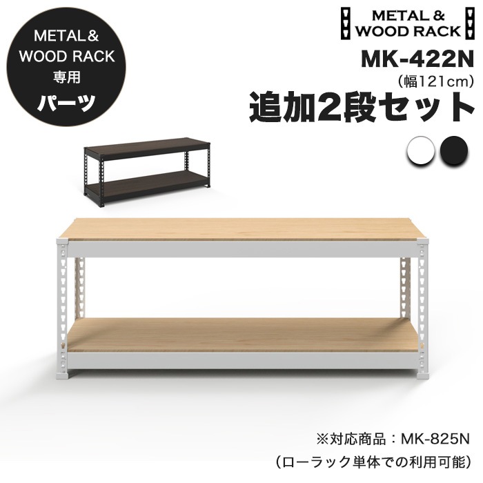 MK-422Nは幅121cmのメタル&ウッドラック商品に追加して高さを調節、または既存の商品と組み合わせてカスタマイズ可能な追加2段セットです。