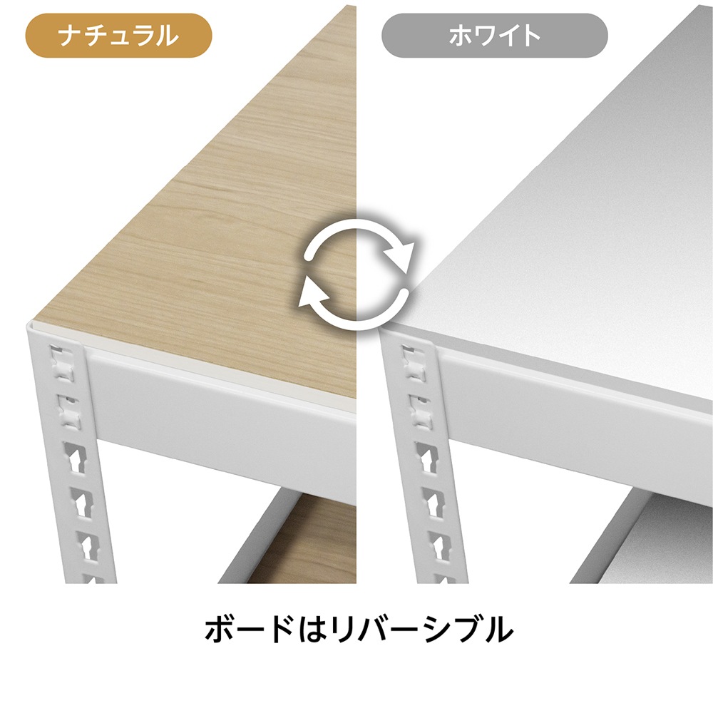 ウッド製の棚板がリバーシブルになっているので、お部屋のイメージに合わせて、雰囲気を変えることが出来ます。工具付きで組立はとっても簡単です!