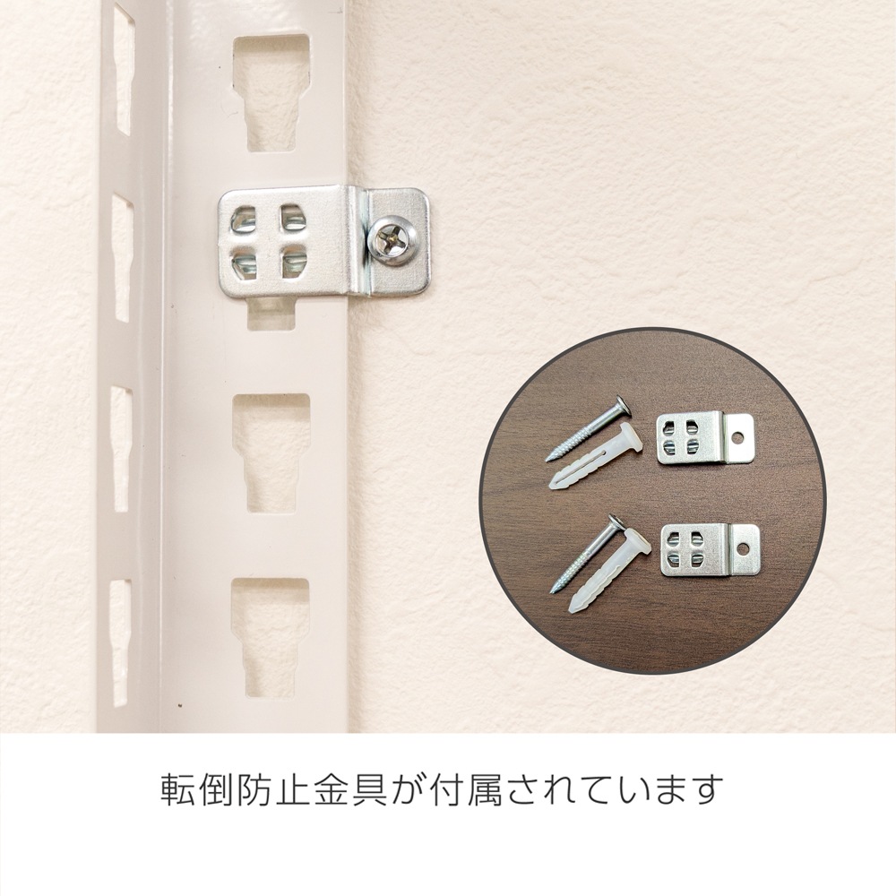 ※安全のため、必ず付属の転倒防止金具を壁面へ取り付けて使用ください。