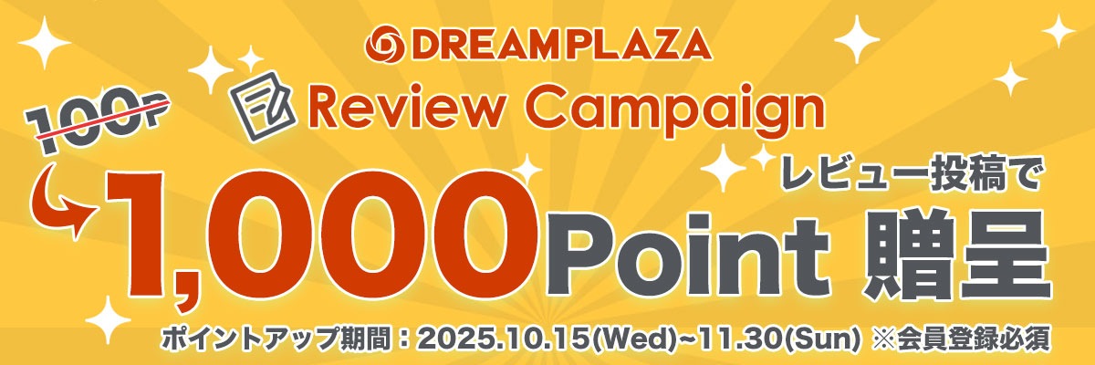 ・ポイント特典詳細:DREAM PLAZA本店でお買い物の際にお使いいただける1,000ポイントをプレゼント!
