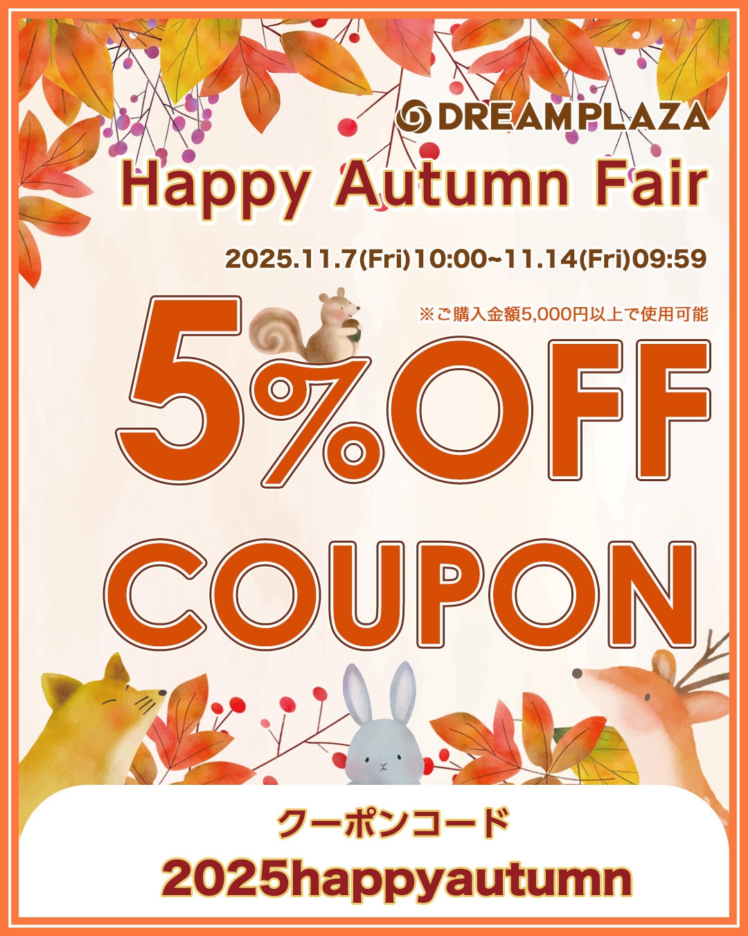◆DREAM PLAZA 2025 Happy Autumn Fair 【5%OFF】 クーポンのご案内